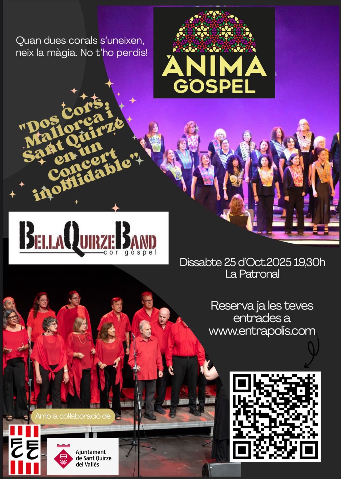 Aquest mes d’octubre la coral de Mallorca Ànima Gòspel i la BellaQuirzeBand celebrarem un concert conjunt, el qual estem preparant amb molta il.lusió.